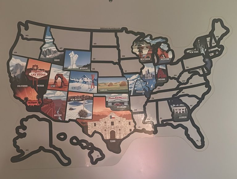 Dann ist da ja auch noch die Lücke auf unserer Landkarte. Ja, eine Landkarte der USA. Mit Aufklebern. Und jedesmal, wenn man einen neuen Staat besucht hat, darf man den Staatenaufkleber auch einkleben… Und unsere Karte füllt sich langsam. Aber die Lücken an der Westküste, oder wie man schonmal so treffend sagt: das Skandinavien der USA, wollen wir auch noch füllen, sehen und erleben. Und natürlich alles andere auch „dort oben“.